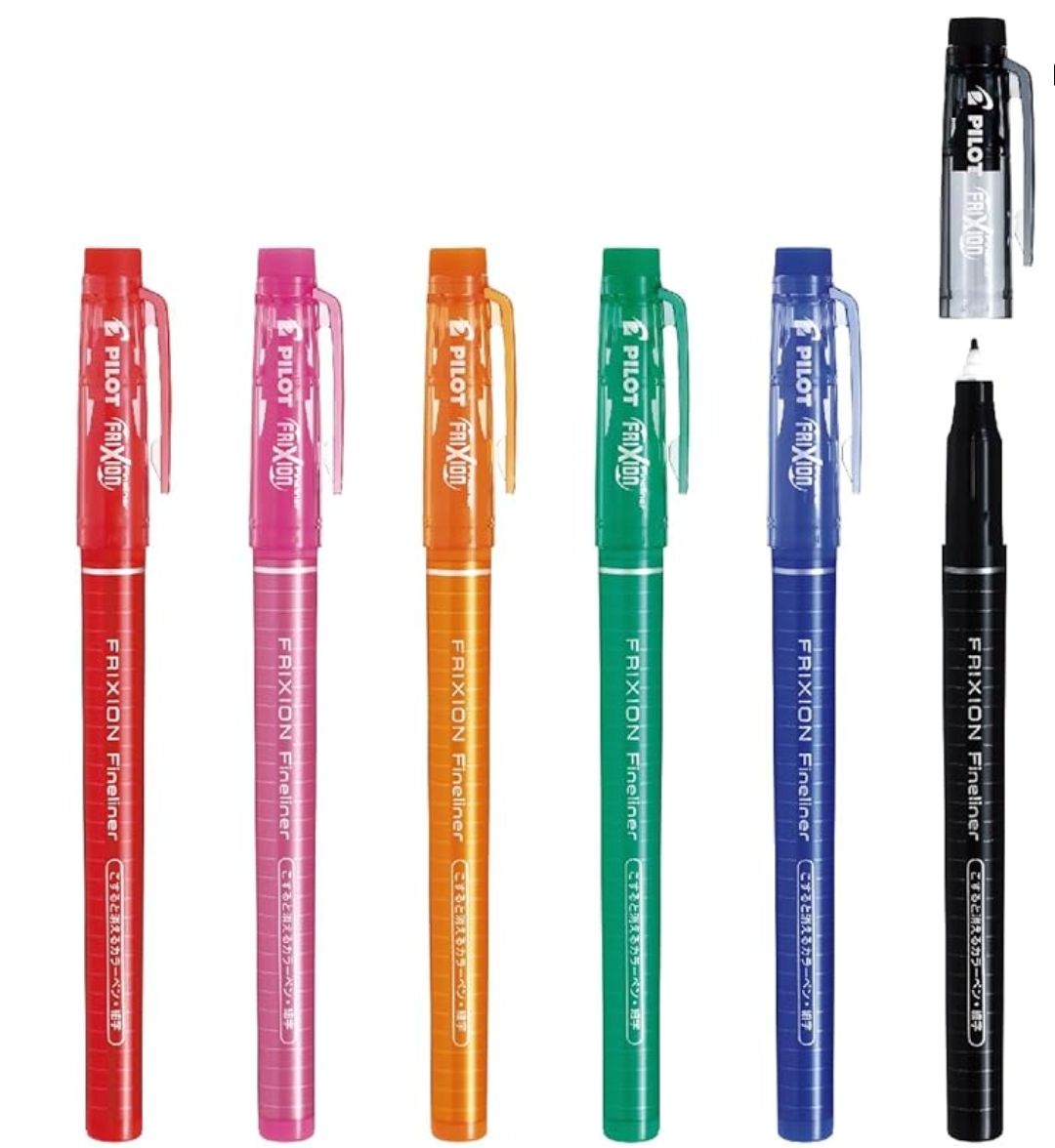 Frixion Fineliner 6 Farben (Radiergummi-Tintenroller)